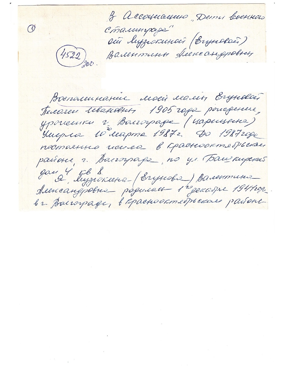 Воспоминания Музюкиной (Егуновой) Валентины Александровны
