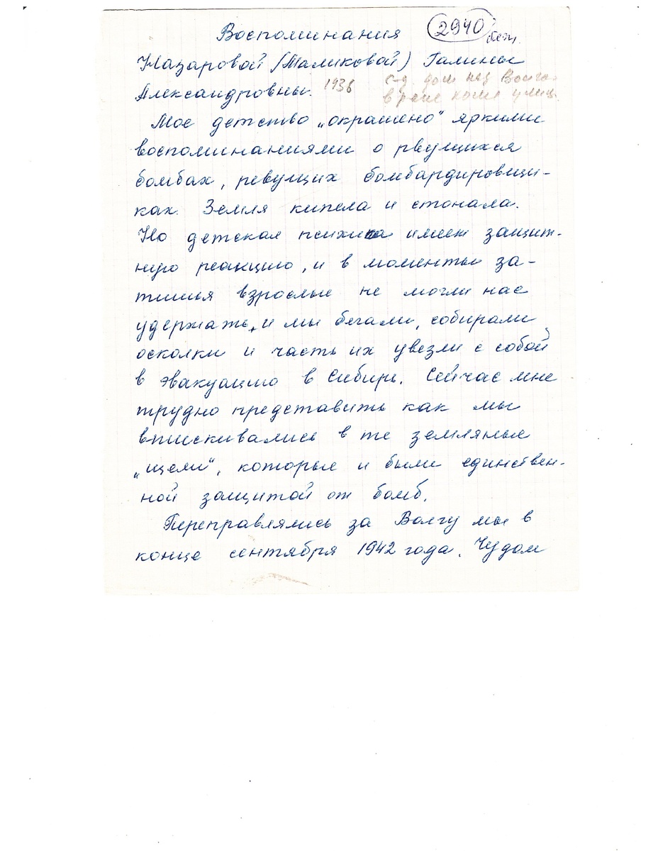 Воспоминания Назаровой (Маликовой) Галины Александровны