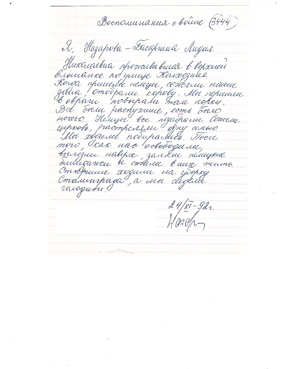 Воспоминания Назаровой-Басаргиной Лидии Николаевны