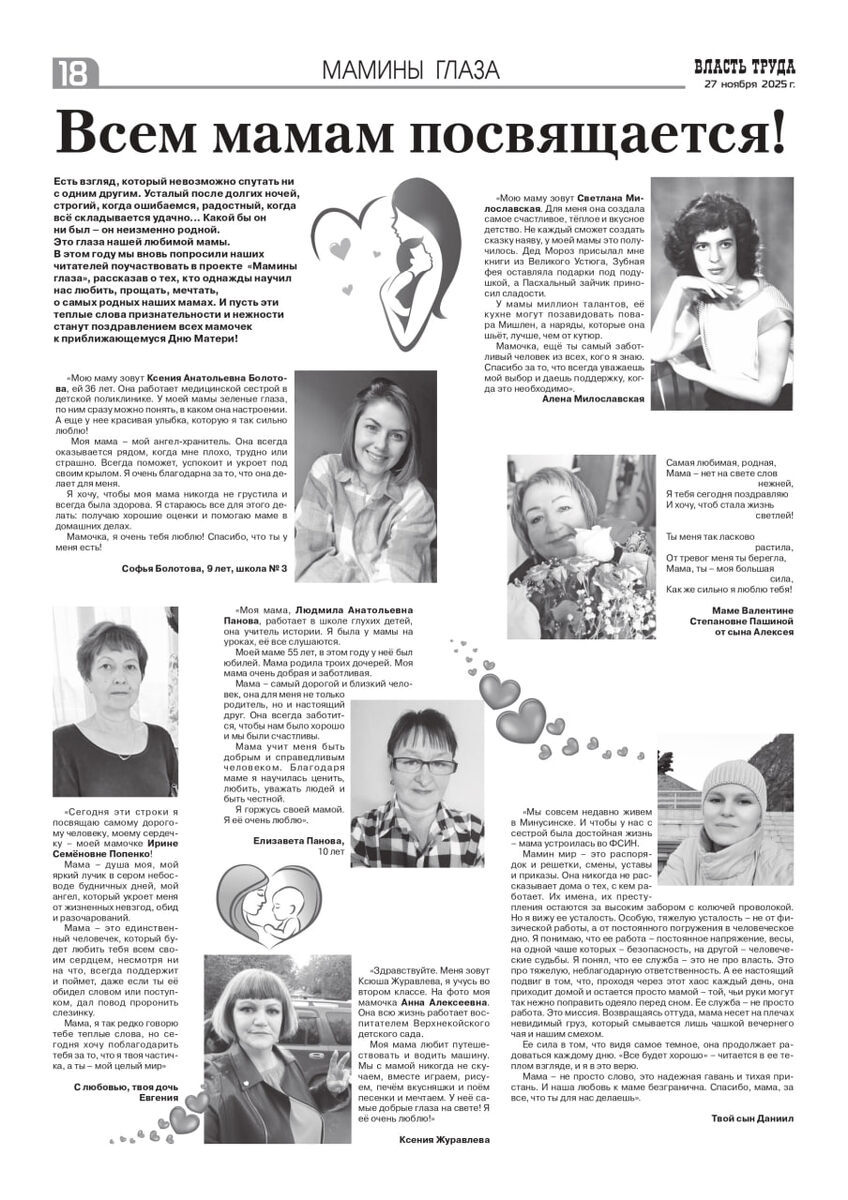 Доброе утро, друзья! Сегодня — особенный день. День мамы Вы еще не поздравили своего самого близкого и родного человека? Так сделайте это поскорее! И посмотрите, как это сделали читатели "Власти труда" на страницах газеты.