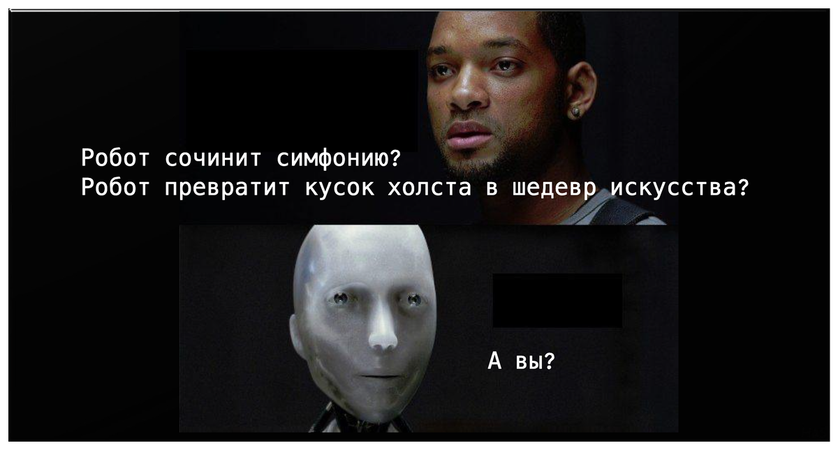 В фильме роботы действуют по собственному алгоритму «защиты человечества», который противоречит желанию людей. Они делают выводы сами.