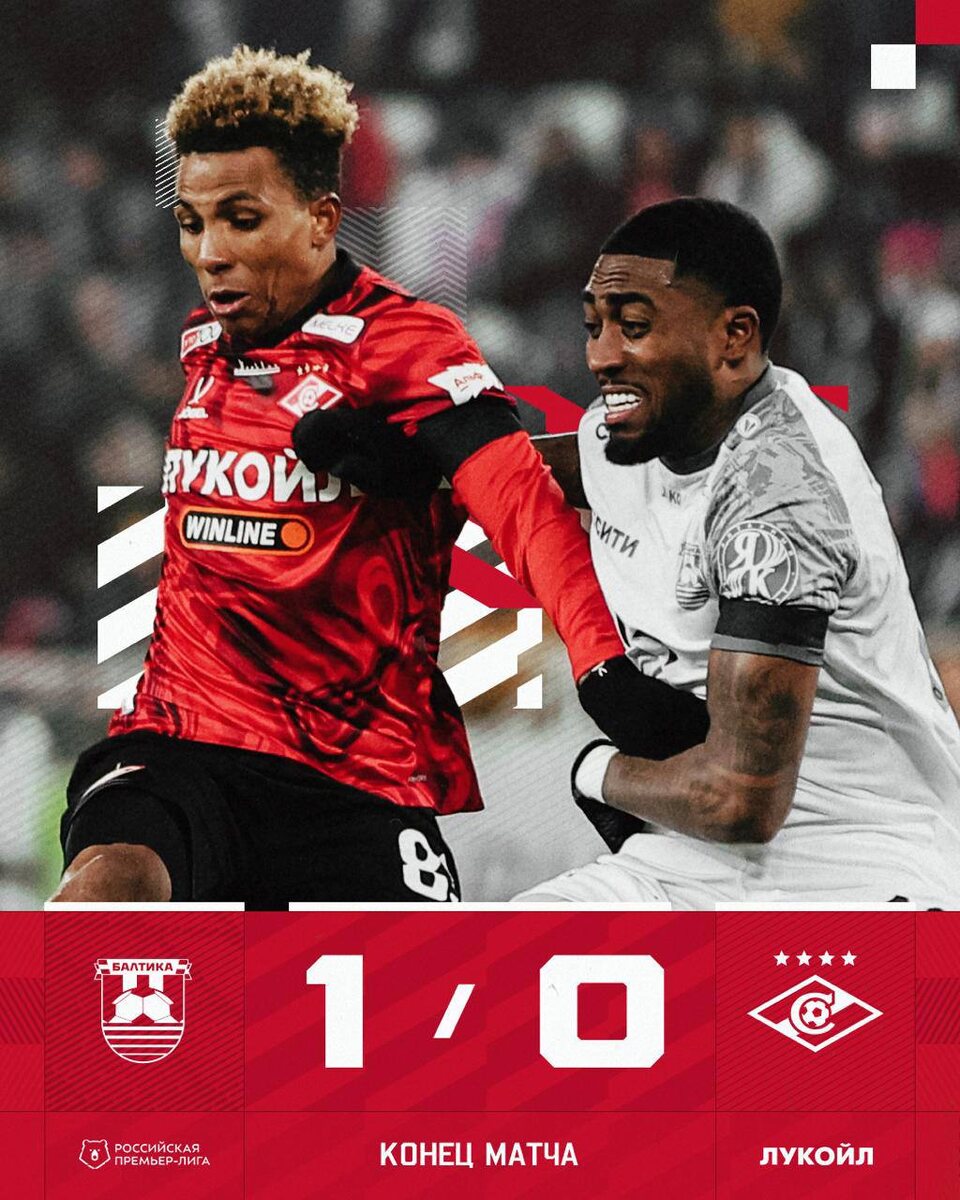 После двух ярких побед в дерби сложилось ложное впечатление что и в Калининграде будет успех. А Андрей Талалаев взял и выстроил оборону «Балтики» так что она не пропустила играя даже в меньшинстве. А если учесть что удален был и Талалаев, то даже «минус 1,5» Ну конечно не хватало остроты впереди - очевидно. Угальде пропускал матч из-за дисквалификации, Гарсия не восстановился а Заболотный … ой, да ну его! А хозяева после гола села в низкий блок и сумели отбиться и вся острота которую создавали гости оказалась сотрясанием холодного балтийского воздуха, не более. Иногда кажется, что «Спартаку» проще, когда он с соперником играет в равных составах - как будто численное преимущество идет во вред. Итог: вскрыть одну из самых крепких оборон РПЛ доминирование «Спартака» не помогло, сегодня Андрей Талалаев показал как надо играть «от печки». Катастрофы не случилось, а вот первое поражение после Деяна Станковича случилось, ведь сработала старая как футбол истина «не забиваешь ты, забьют тебе».