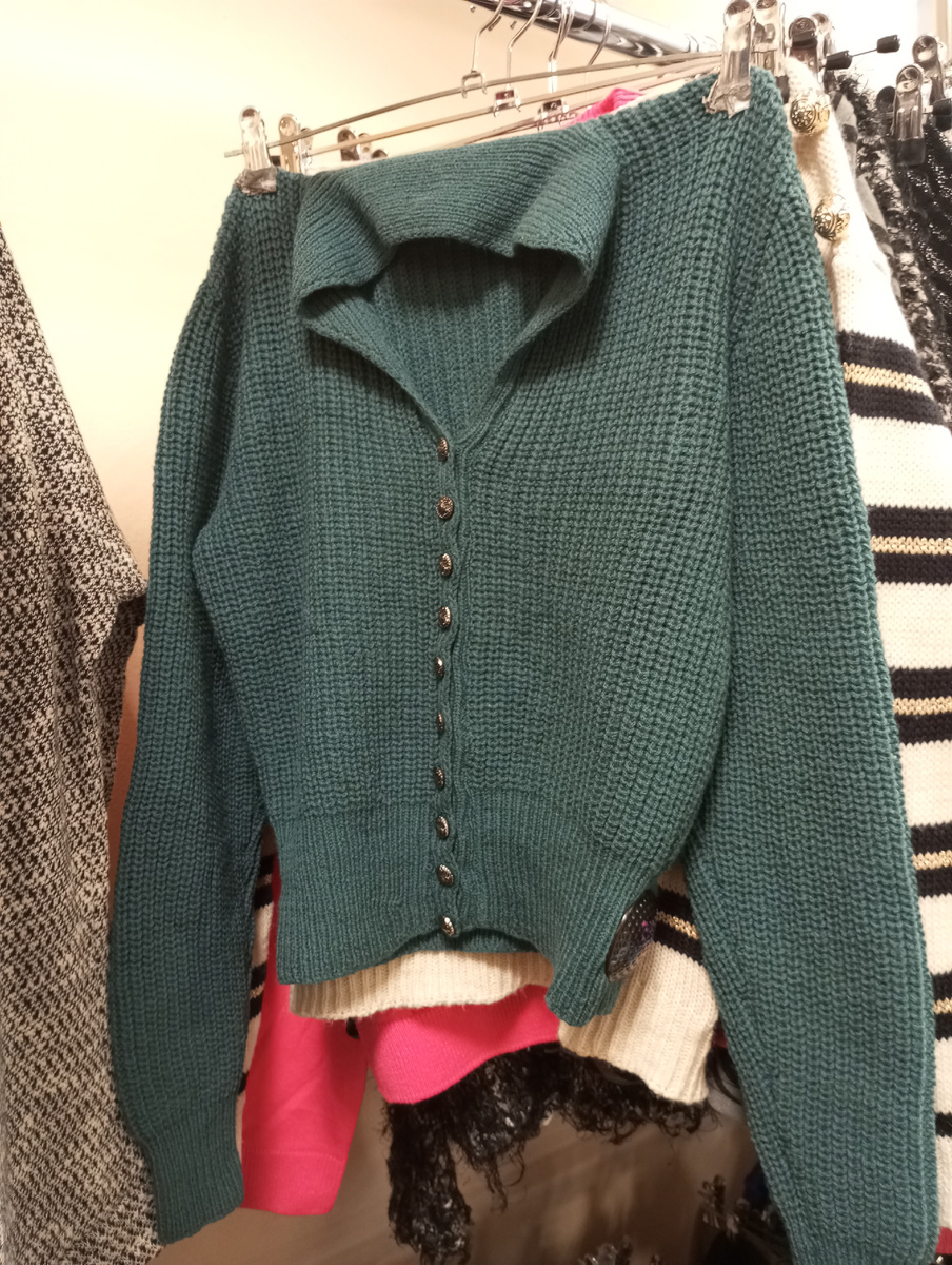 Приветствую, дорогие подписчики 🫶 Если Вы ещё не подписаны - приглашаю Вас присоединиться, на этом канале я публикую обзоры из магазинов секонд хенд. Ищу уникальные и качественные вещи, рассказываю про бренды. Ссылка на Авито, там представлены вещи, которые не оставили меня равнодушной - может быть они понравятся и Вам❤️ Эта статья - продолжение обзора на интересные вещи, скидка была 50%. Вязаный кардиган Этот кардиган из смеси - шерсть, акрил. Ручная работа, только чем связан не знаю - спицы? Оттенок классный, пуговицы металлические тяжёлые. Размер маленький . Не колется, довольно мягкий . Свитер Benetton Теплый осенний свитер, без состава, предположительно мохер и шерсть, акрил. Кирпичная часть пушистая, с узором Жилет ручной работы Ещё одна интересная вещь - вязаный жилет в сложном оттенке, между синим и серым. Может эту статью читают те, кто вяжет сам и может подсказать чем связан жилет? Чисто мой интерес😅 Размер жилета 46-48 Кофта винтажная Неплохая теплая ко