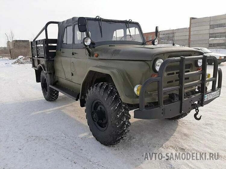 ГАЗ-66, также известный как «Шишига», давно стал популярной платформой для тюнинг-проектов. Его ценят за простоту конструкции, надежность и высокую проходимость. Но есть у этого автомобиля и свои недостатки — например, сравнительно небольшая кабина, которая заметно ограничивает комфорт пассажиров. Именно поэтому многие энтузиасты берутся за доработку ГАЗ-66, с целью превратить его в более удобный и функциональный внедорожник. Читать на сайте: Парни с руками показали ГАЗу настоящее мастерство: они выпустили свою «Шишигу» для бездорожья Одним из таких проектов стал «Барс-01», созданный на АО «811 Авторемонтный Завод КИ» в казахстанском городе Ерейментау. Основная задача заключалась в том, чтобы повысить комфорт авто, сохранив при этом внедорожные возможности «Шишиги». На первом этапе мастера установили на шасси ГАЗ-66 пятиместную кабину с тентовым верхом, позаимствованную у УАЗ «Хантер». Чтобы она корректно встала на раму, кабину укоротили, а по бокам приварили крылья от ЗиЛ-131. За каби