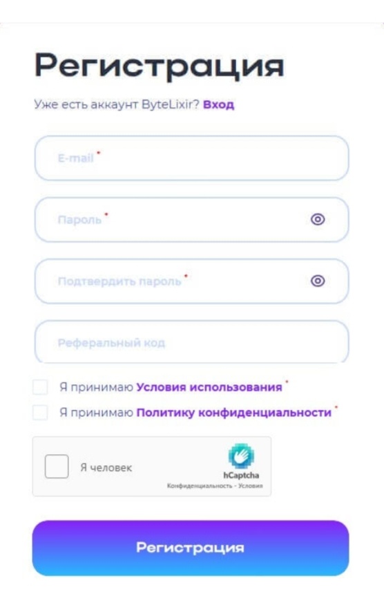 Пассивный доход с помощью Bytelixir. Для заработка на этом сайте от Вас не понадобится ничего... кроме доступа к вашему устройству, подключённому к сети интернет. ByteLixir — это приложение для пассивного дохода в Интернете, которое позволяет вам зарабатывать деньги, делясь подключением к Интернету. Это простое, безопасное и нетребовательное виртуальное приложение. Оно работает на Windows, Android и некоторых других типах устройств. Вы получаете вознаграждение за каждый гигабайт информации, отправленной или полученной, пока приложение работает в фоновом режиме. Процесс автоматизирован и безопасен для вашего гаджета и подключения к Интернету. Сама регистрация на сайте простая. Для того чтобы зарегистрироваться на сайте, проходите по ссылке - Заполните поля для регистрации. После регистрации потребуется подтверждение вашей электронной почты. Вам будет отправлена ссылка на ваш email со специальным шестизначным кодом. Вам необходимо из сообщения в электронной почте вставить этот ко