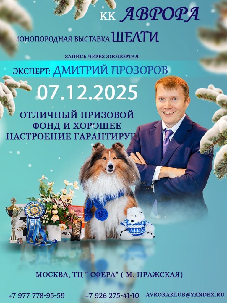 ⏰ 7 дек (7д) 🏛 #Москва #Россия #Выставка 🐶 Выставка собак: Кинологический клуб "Аврора" 🏆 Кинологический клуб "Аврора" Контакты организаторов здесь: 🌐 https://www.petsman.ru/vystavki-sobak.php?mesto=39-moskva Монопородная выставка породы Шелти, ранг КЧК Монопородная выставка породы Вельш корги пемброк, ранг КЧК 🧑 👨 Эксперты: 🔹 Прозоров Дмитрий Альбертович (Россия)