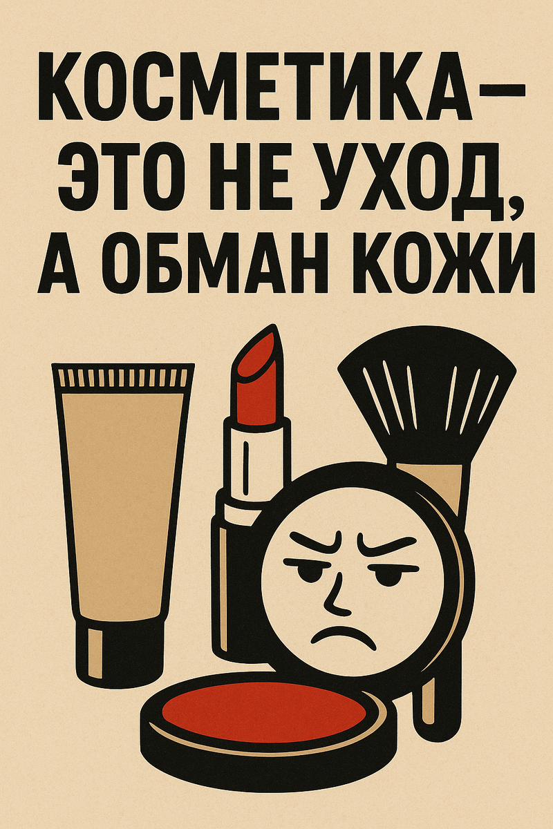 Но по факту косметика запускает механизм обмана кожи. Она посылает сигнал: «всё хорошо», хотя внутри — сухость, микроповреждения, воспаление и токсичность. Крем создаёт плёнку, которая блокирует испарение воды.