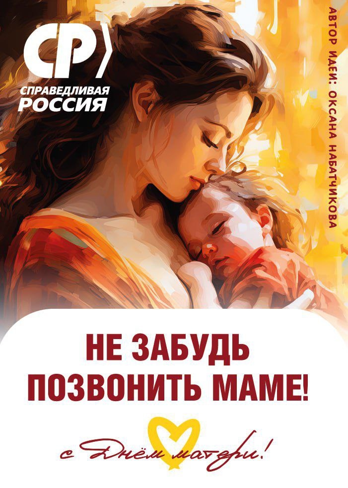 ❤️Поздравляем с Днём матери! Этот праздник – день тех родных и близких каждому человеку людей, которые дарят нам жизнь и безусловную любовь, которые оберегают нас и посвящают нам бессонные ночи и главные уроки в жизни – день всех мам. Сквозь жизнь мы несём чувство благодарности к родителям и с особенной нежностью и любовью относимся к маме – ценим за поддержку, заботу, трудоспособность, терпение и мудрость. Пусть в каждом доме всегда будет мир и покой, благосостояние и любовь, пусть понимание и поддержка близких никогда не оставляет вас, а сил будет хватать на все-все свершения! Крепкого здоровья и благополучия! — С уважением, Оксана Набатчикова, лидер партии Справедливая Россия в Оренбуржье