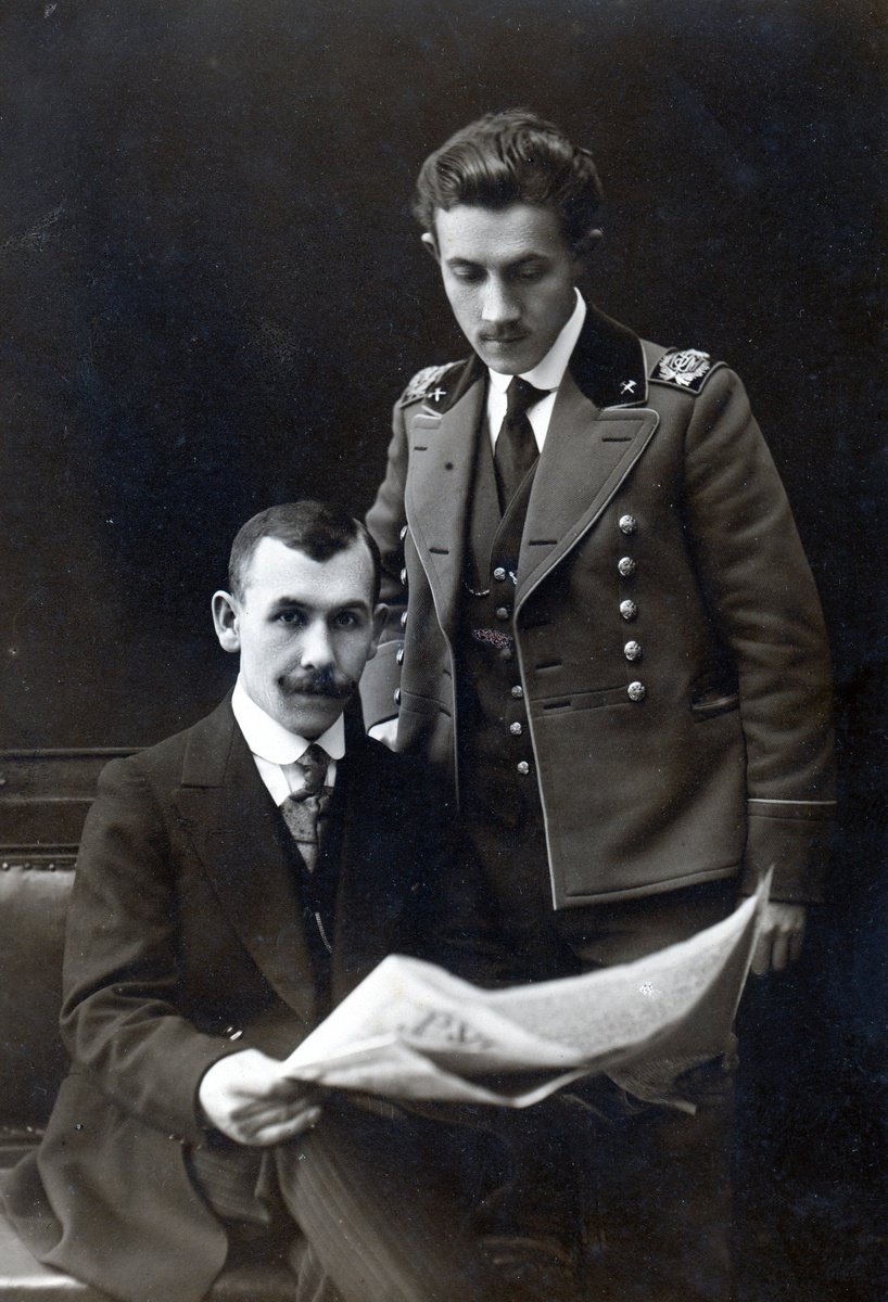 Сегодня день Краеведа.поздравляю всех занимающихся поисками информации о своей малой Родине,а также своих родословных. На этой фотографии два родных брата Новожиловых из деревни Шебаршино.Обоих зовут Василиями, что очень интересно.С газетой Василий первый 1887 года рождения , ювелир фирмы Фаберже,стоит Василий второй 1892 года рождения студент Императорского Московского технического училища. Если о первом известна более менее его жизнь,то о втором очень мало информации о его жизни в Можайске в период после войны до 1971 года когда он погиб на автостанции под колесами автомобиля.Публикуем его фотографию может есть родственники которые его знали