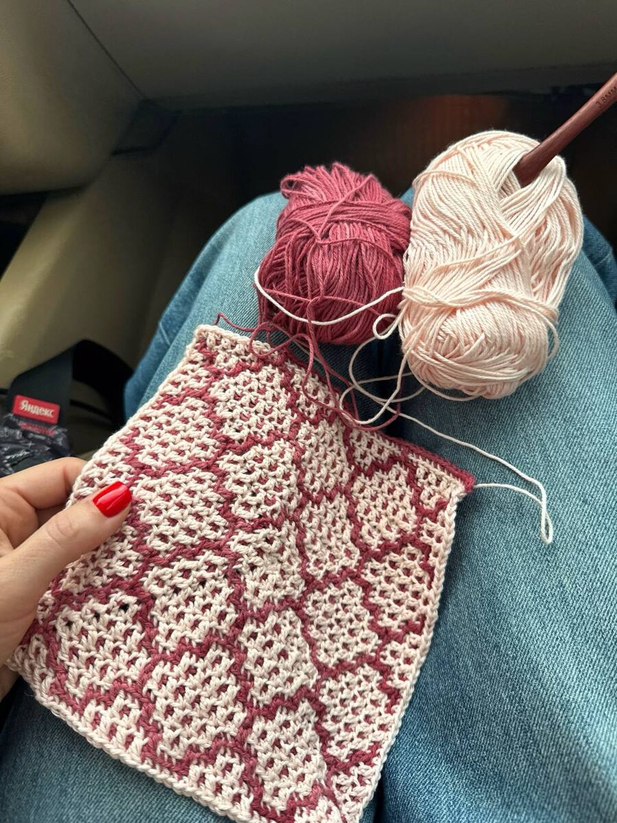 Едем, а значит в дорогу беру один из маленьких проектов. На этот раз продолжу вязать полотенце из Schoppel. Этот узор есть в подборке «Топ-10 узоров из центра». Он асимметричный относительно центра, будьте внимательны. А что у вас в работе сейчас?