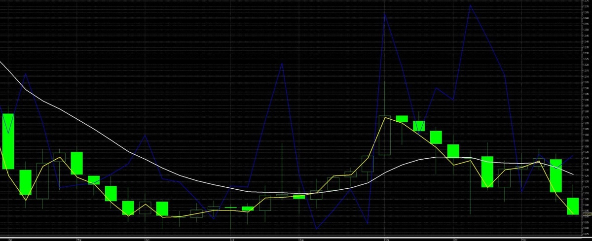 2. РУБЛЬ CNYRUB по недельным CNYRUB_TOM жёлтый CNYRUBF вечный Боковик Нет ни роста волы, ни роста объёма, т.е. нет признаков перехода боковика в тренд Думаю, что валюта пока не интересна