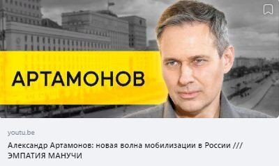 Посмотрел вчера видео с интервью у военного эксперта Александра Артамонова. Называется оно: «Александр Артамонов: новая волна мобилизации в России/// ЭМПАТИЯ МАНУЧИ» На меня это видео произвело очень тягостное впечатление. Стал разбираться, что с ним не так. Во-первых, мы видим очень привлекательное и, прямо скажем, немного леденящее душу название: «…новая волна мобилизации в России». Люди хотят узнать, что там с новой волной мобилизации – не заберут ли на войну их самих или их близких, и смотрят это видео. И оно набрало за 2 дня на Ютубе 1,4 миллиона просмотров. Во-вторых, посмотрите, какие первые слова в этом видео: Корреспондент: - Где мы ещё возьмём пятьсот тысяч человек? Александр Артамонов: - Мы можем легко взять пятьсот тысяч человек. Наш мобилизационный контингент более двух миллионов человек. И сразу после этих слов включается видео с шизофренической, разрушительной, деморализующей музычкой и что-то изображающими придурковатыми с виду людьми. Видео заканчивается, а музычка вс