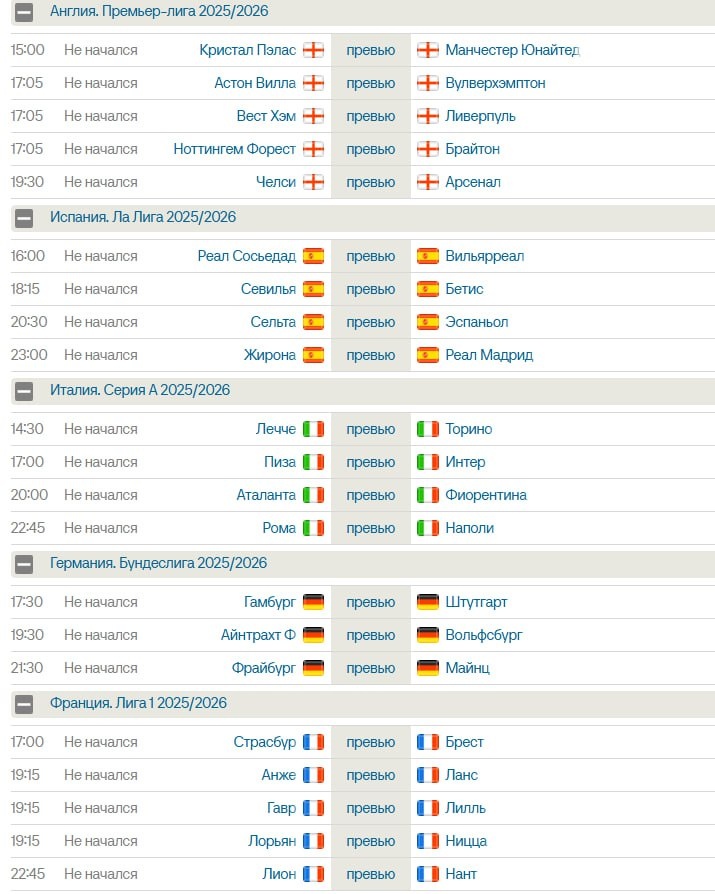 Матчи на сегодня