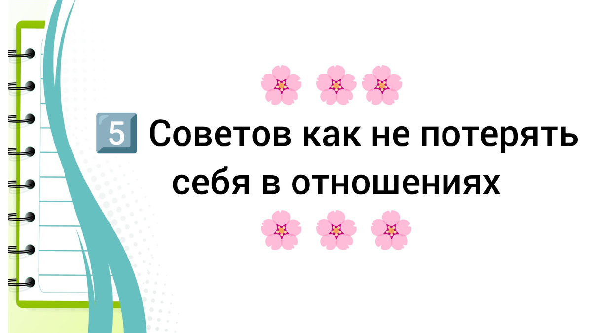 5️⃣ Советов как не потерять себя в отношениях Отношения - это путешествие, в котором мы учимся быть вместе, оставаясь самими собой. Однако порой, в стремлении угодить партнёру или сохранить гармонию, мы рискуем утратить свою индивидуальность Вот несколько советов, как этого избежать и сохранить свое «Я» в отношениях: 1️⃣Поддерживайте свои интересы и не забывайте о том, что делает вас вами. Помните, что вы полюбили своего партнера за его уникальность, особенности характера, мышления. Тоже было и с его стороны. Каждый из вас влюбился в равного, полноценного, отдельного человека со своим миром. Поэтому так важно этот союз двух целостных личностей сохранить. 2️⃣Установите личные границы и научитесь говорить «нет», когда что-то вам некомфортно, и не бойтесь отстаивать свои потребности. Замалчивание недовольства или игнорирование желаний приводит лишь к накоплению напряжения, которое рано или поздно найдет выход. Партнёр, который любит и уважает, поймёт и будет вместе искать пути решени