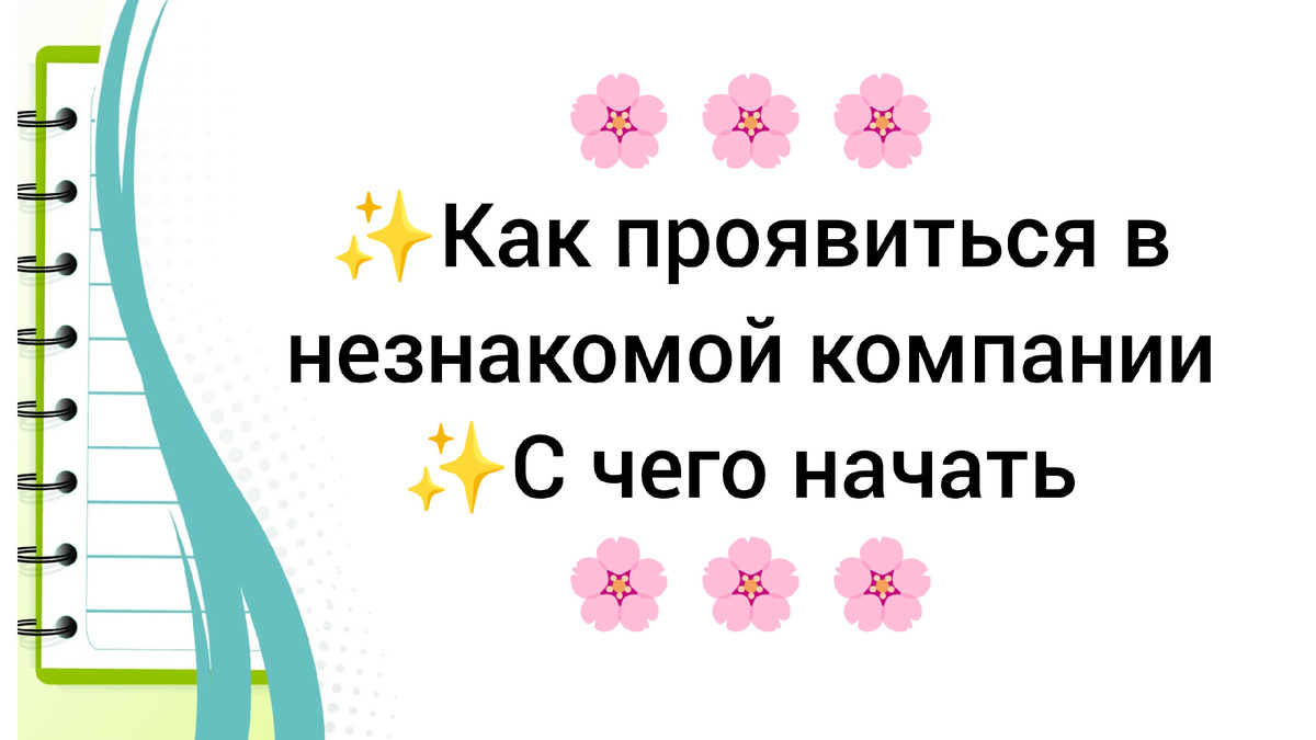 ✨Как проявиться в незнакомой компании, и с чего начать? И многие из нас сталкиваются с этой проблемой. Вот вы пришли на работу в незнакомую компанию, или молодой человек привел вас знакомиться со своими друзьями и очень не хочется выглядеть глупо или нелепо. Но о чем говорить с людьми, которых видишь в первый раз? 👥Проявите искренний интерес к людям.Собеседникам чаще всего нравится говорить о себе; они любят, когда ими интересуются. Задавайте вопросы, проявляйте внимание и не смотрите в пол или в экран телефона от стеснения. 🙂Улыбнитесь. Если вам сложно с ходу взять и улыбнуться незнакомым людям, предлагаю потренироваться заранее. Перед выходом из дома возьмите себе за правило улыбнуться 30 людям. Не прокручивайте сразу мысли о том, что о вас подумают, пусть главной мыслью будет: улыбка располагает к общению, этот навык пригодится в будущем. Покажите ваше отношение и эмоции. Не бойтесь включаться в обсуждение и высказывать свое мнение: ✨«У меня, к сожалению, был негативный оп