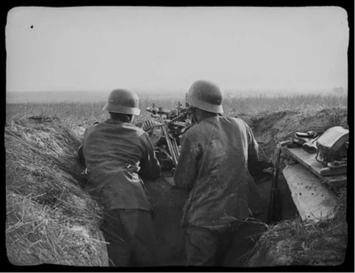 Один из снарядов сорокапятки удачно разорвался на заднем бруствере окопа, опрокинув пулемёт и поразив изготовившихся к бою наводчика и его помощника. Двух других номеров расчёта, Федя видимо зацепил своим огнём, когда они решили установить свой агрегат на место. Не зря же в ту сторону улетела целая стапатронная лента. Ну и не желая искушать судьбу, оставшиеся без командира (унтер-офицер валялся рядом с опрокинутым пулемётом), подносчики решили сделать ноги. А может, больше никого тут и не было.