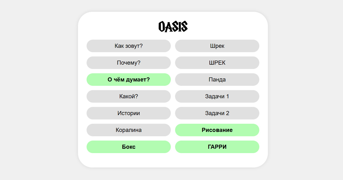 Миг (835). Вот так теперь выглядит меню приложений для Гриши: Всё же переименовала его. Был "Румпель", стал "Оазис". Почему? Потому что наш диалог с Гришей годами выглядел так: Гриша: - Не хочу делать уроки. Я: - лалаллала (не важно что). Теперь. Гриша: - Не хочу делать румпеля. Я: - Гм... (и Румпель настоящий с недоумением "При чём здесь я?" ... И поэтому я решила, что надо как-то менять слова. Вот, изменила, и теперь я многозначительно могу говорить: - Гриша, иди делай оазис. На мой взгляд, звучит лучше. Шрифт слова OASIS - это шрифт HarryP. Гриша его любит и использует в своих файлах. Такие изменения. Для истории. Конец. МИГ. Что это? Это статья, под которой раньше можно было опубликовать фото сегодняшнего дня. Любое. Портрет, пейзаж, натюрморт, не важно. Цель? Остановиться и увидеть жизнь вокруг. Правила: Будьте людьми. Первая статья на тему вот. В связи с тем, что Дзен ввёл плату за публикацию фото в комментариях, это теперь невозможно. Но возможно описать момент, кот