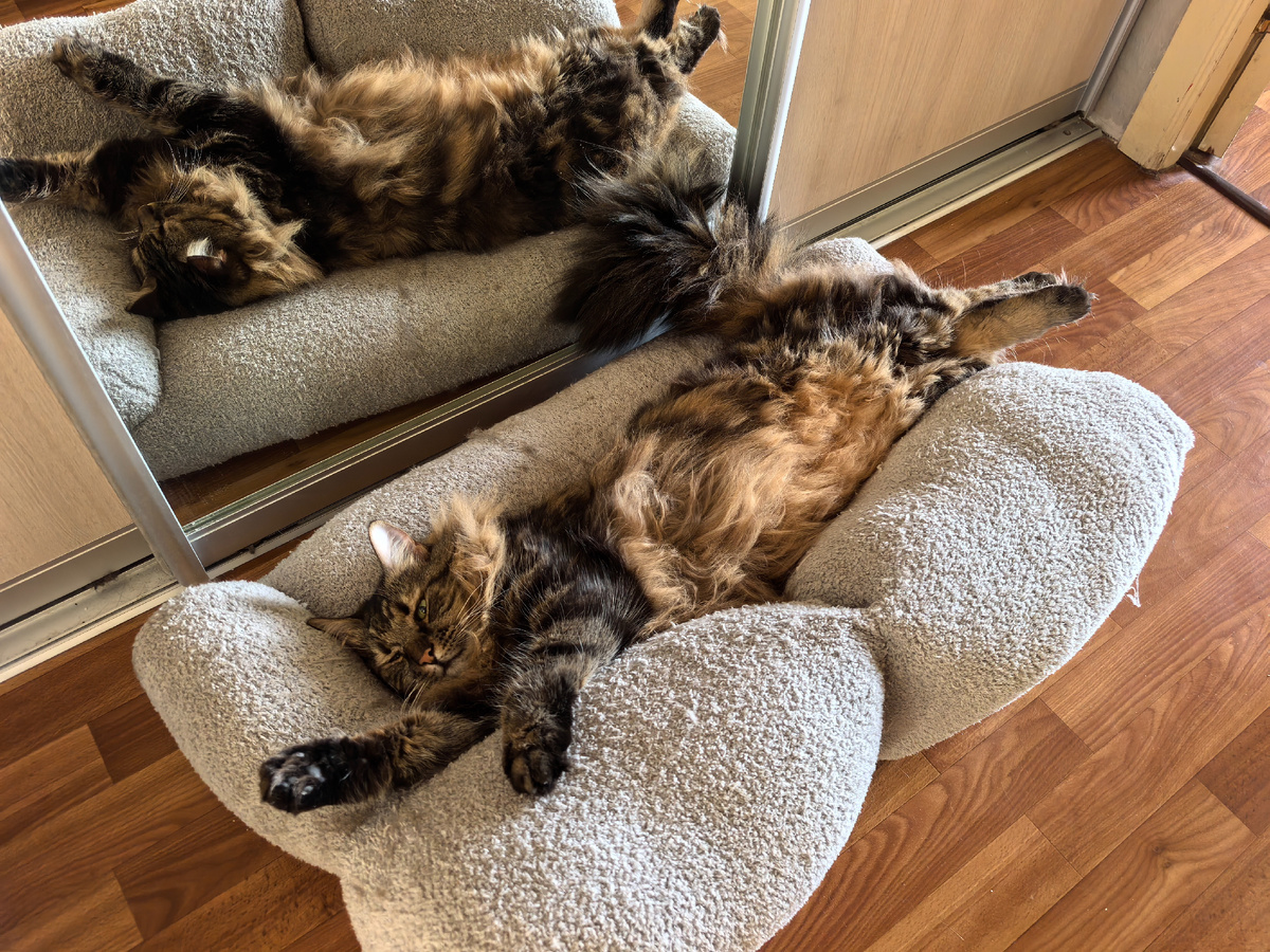 Всем привет! С вами Кузя Кусалоскин (он же царь Кузьма I). Сегодня расскажу, как же я постился, что готовила хозяйка и почему ей пришлось вставать ночью. Утром людишки решили встать попозже. Но я с этим был не согласен и пришёл по привычному графику будить хозяйку. Она даже не сопротивлялась, а просто встала и пошла давать мне паштетик. Поел, конечно же, с царской тарелки. На новые каналы я сейчас не подписываюсь. Дружить, забежать в гости времени нет. Хозяйка вернулась в кровать и ещё часик поспала, ну а я вёл себя прилично, никого не будил. Хозяин решил утром поехать колеса у машины поменять. А то зима скоро, и ну и что, что у нас довольно тепло, положено с 1 декабря на зимних ездить. Да и по утрам, вечерам может быть холодно. Раз людишки встали, то я решил поспать: Отдыхал на диванчике, но бдительность не терял: Выспался и пошёл в свой кабинет, наблюдал. А хозяйка тем временем решила сварить последние креветки. Я почуял запах и прибежал на кухню. Получил креветочек. Конечно же, п