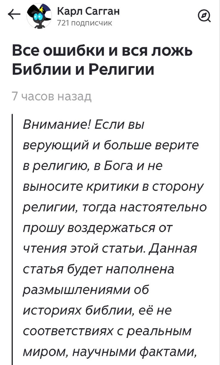 Всем привет 👋 Этот Карлуша-вруша и его свита всё никак не уймутся и продолжают оскорблять и врать про всё вокруг. Как я писал ранее, Карл посягнул на Религию и Библию. И при этом, он говорит, что он "обыкновенный" человек. ДА КАКОЙ ОН ОБЫКНОВЕННЫЙ ЧЕЛОВЕК?! ОН - САМЫЙ НАСТОЯЩИЙ ГРЕШНИК! При этом он писал, что "не хотел оскорбить верующих". А нет, он хотел их оскорбить! Если он атеист, то ему НЕ ПОЗВОЛЕНО оскорблять Религию и Библию! "Бог так ненавидит динозавров"? Да что ты говоришь, идиот?! Динозавры существовали ещё ДО появления Иисуса Христа. Ставлю тебе кол. Этот идиот сравнивал Библию с научными фактами. Хотя всем известно, что Библия была написана ДО научных открытий и что Религия и Наука - это РАЗНЫЕ вещи! Оставляю тебя на второй год в 1 классе, Карлуша-вруша. Да ты опять упоминаешь Джейн (Симпамышь) и ДаркВульфа в своих статьях и врёшь про них. 😒 Тебе не надоело?! Напомню, что BadWrite и ДаркВульф - это РАЗНЫЕ люди!☝️ Далее, Карл начал наезжать на других блогеров