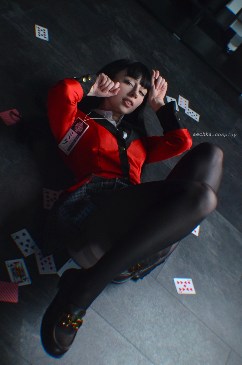 Этот косплей – настоящее воплощение азарта и безудержной страсти к игре! Aechka идеально передала эксцентричный характер Юмеко, ее пронзительный взгляд и маниакальную улыбку. Обратите внимание на детали: безупречный макияж, точно воссозданный костюм и, конечно же, фирменные красные глаза, которые гипнотизируют. Aechka, браво!