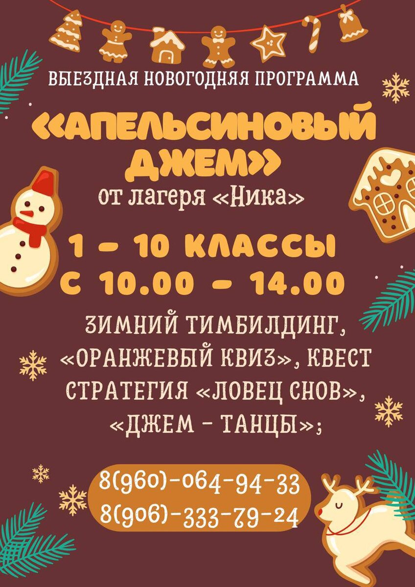🍊 АПЕЛЬСИНОВЫЙ ДЖЕМ — ТРЕНИНГ ДЛЯ КЛАССОВ 1–10! Хотите, чтобы ваш класс стал командой, которая не просто сидит за партами рядом, а реально дружит, поддерживает и двигается в одном ритме? Тогда наш тренинг «Апельсиновый Джем» — идеальный вариант! Что ждёт ребят: 🍊 Сплочение — упражнения на доверие, командность и взаимодействие. 🏃♂️🏃♀️ Квест игра на улице — динамично, ярко и с хорошим настроением. 🍽 Вкусный перекус — потому что командная энергия требует подпитки 😉 🎄 Новогодняя атмосфера Ники — тёплая, поддерживающая и очень живая. 📍 Где: Саулык 🕙 Когда: с 10:00 до 15:00