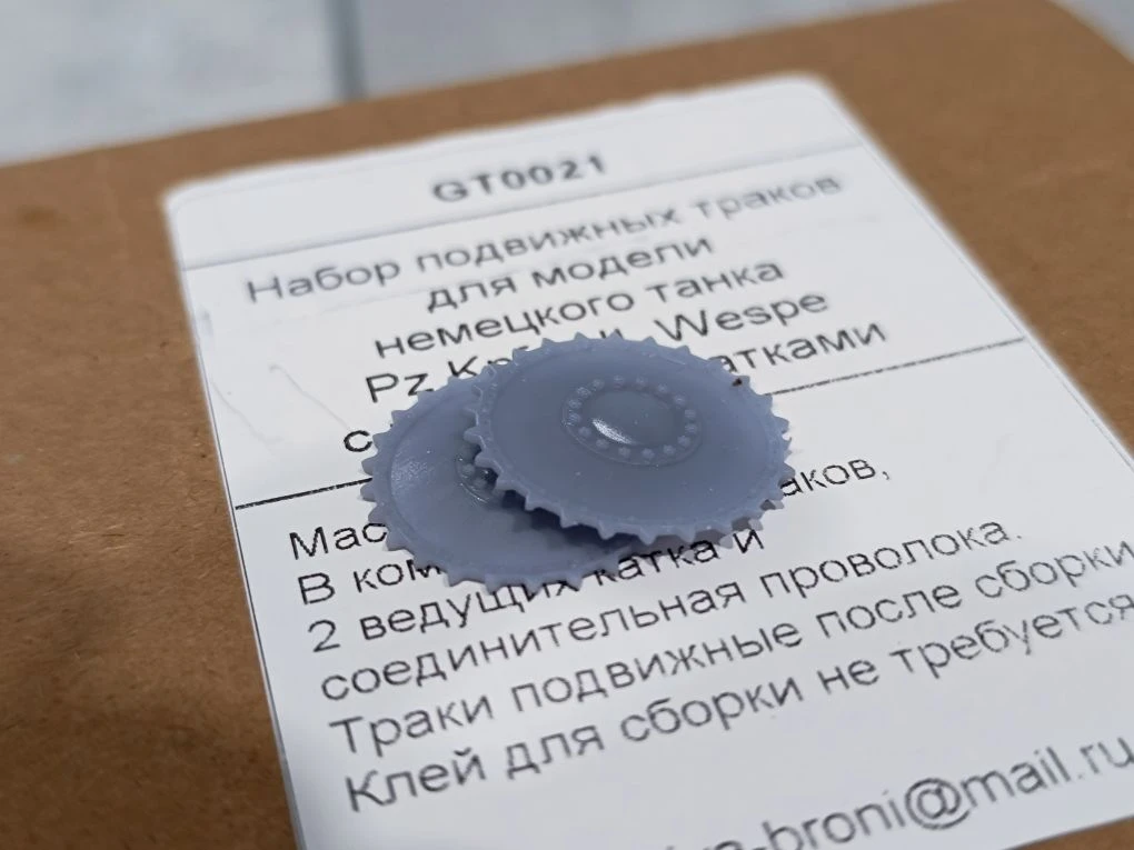 Привет! В наборе, который обозревался на прошлой неделе, комплектные гусеницы виниловые. Которые никак и ничем адекватно не красятся. А еще выглядят совсем не как гусеницы. Так что решено было взять афтермаркетное дополнение в лице набора подвижных траков Доброго времени! Рад Вам на моем канале! Для Вас пишет Дмитрий Лыков, автор канала Сервисный консультант - начинающий моделист и фанат автомобилей Чтобы не пропустить новое - подпишитесь на канал: Приступим! Набор поставляется в простой картонной коробке без излишков. Комплект обещает: Первым делом проверил состояние катков - некоторые покупатели в отзывах писали, что они приходят кривые Нет, катки нормальные, отклонения от плоскостности нет. Сами траки идут россыпью, то есть от поддержки отделены Тем не менее, немного доработать перед сборкой траки придется - есть нитки пластика между элементами трака, но они легко срезаются ножом Проволока, для пальцев траков мягкая, похожа на обычную вязальную. Но лакирована. Как будет в сборке