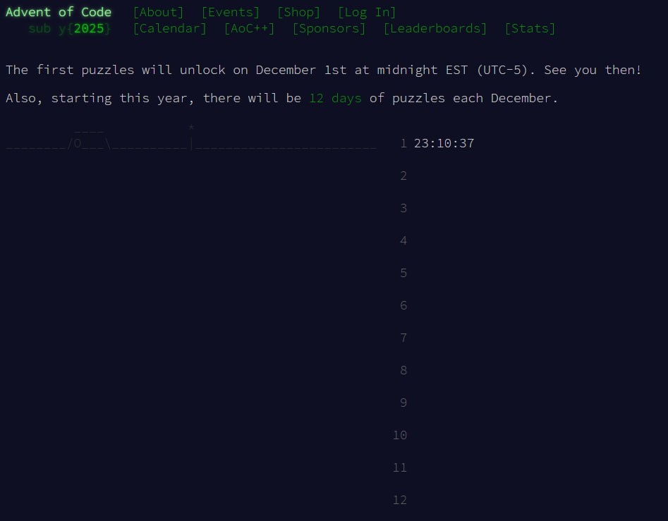 🎄 Advent of Code 2025 Традиционный новогодний челлендж стартует уже завтра. В этом году его создател Эрик Вастл внёс следующие изменения: 1️⃣ Всего 12 дней вместо 25 Официальная причина — создатель устал. 10 лет подряд делать по 25 задач — это адский труд. 2️⃣ Глобальный лидерборд убит Его больше нет. Совсем. Эрик объяснил это просто: лидерборд стал источником токсичности, стресса и даже DDoS-атак на серверы ради «очков». 3️⃣ Позиция по AI: Hard No В FAQ появился великолепный пункт. «Стоит ли мне использовать ИИ для решения? Нет. Если вы отправите друга в качалку вместо себя, вы ожидаете стать сильнее?» Справедливо 👌 Задачки можно решать на любом языке. Python, конечно, есть. Кто участвует?
