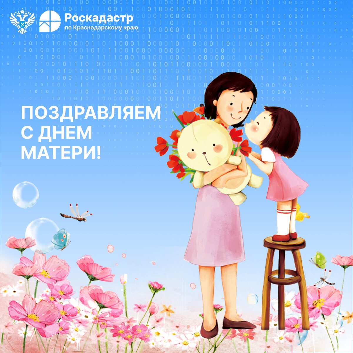 🗓️ Ежегодно в последнее воскресенье ноября в России отмечается один из самых трогательных праздников – День матери. 🔹Этот день посвящен самой светлой и доброй силе на земле – материнской любви и заботе. Именно благодаря вам мир становится уютнее и счастливее. Вы дарите своим детям тепло души, мудрость и поддержку, вдохновляете их на великие дела и мечты. 🎊Филиал ППК «Роскадастр» по Краснодарскому краю поздравляет всех мам с замечательным праздником и желает крепкого здоровья, семейного счастья и благополучия. Пусть каждый день дарит вам больше поводов для улыбок!