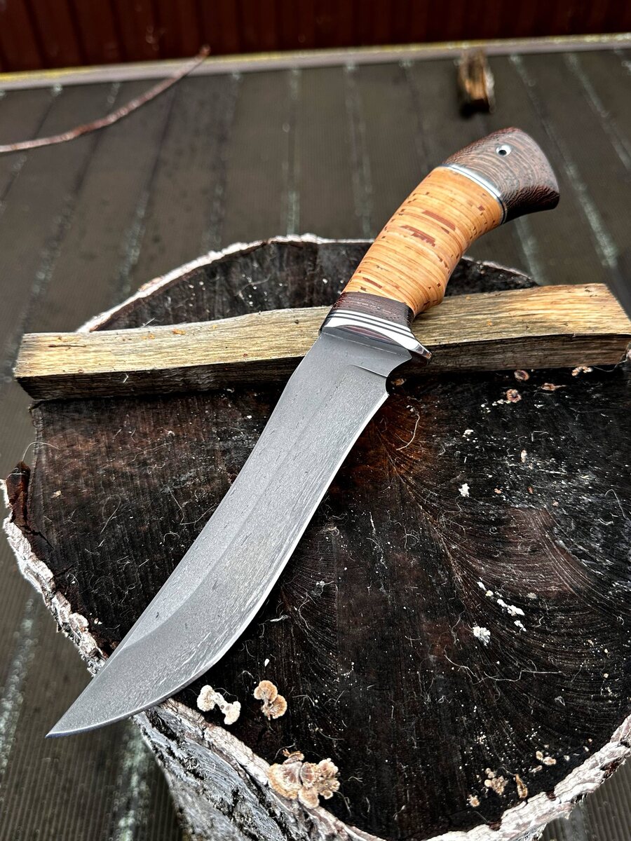 Нож «Спецназ» — надёжный помощник для серьёзных задач! ⠀ Сталь Х12МФ (твердость 61-62 HRC) — прочность, выносливость, долгий срок службы заточки. Такой нож не подведёт в самых жёстких условиях: охота, рыбалка, туристические походы, работа по дереву и в полевых условиях. Рукоять из бересты — тёплая, лёгкая и не скользит даже во влажных руках. Гарда — специальной формы, защищает от соскальзывания руки. Заточка «в бритву» — режет легко и точно, сразу из коробки готов к работе. Кожаные ножны — в комплекте. *Дополнительно* можем изготовить формованные ножны (+8000 руб.). Цена: ~9.680~ → 8.440 рублей со скидкой! Как заказать? Пишите в Telegram: [@Nazarklinokbot](https://t.me/Nazarklinokbot), или WhatsApp/Viber: [ +79101343831](https://wa.me/79101343831) #нож #охота #рыбалка #ручнаяработа #кузницаНазарова #Х12МФ #Спецназ #подарокмужчине
