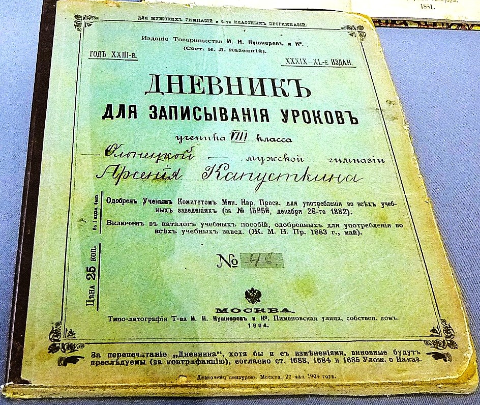- С начала года на канале - ещё одна помесячная обновка, написание которой требует от вашего покорнейшего некоторых... импровизаторских дарований: в наличии последних, признаться, я не совсем-то и уверен, но, тем не менее, продолжаю. Титульная иллюстрация - дневник некоторого ученика VIII класса Олонецкой мужской гимназии Арсения Капусткина - разумеется, суть лишь формальная наружная оболочка моей затеи, тем не менее, с вполне себе двусмысленным названием "дневник для записывания уроков". Ибо вся наша жизнь, знаете ли, есть сама по себе некий урок, выучить который или получить за него законное "неудовлетворительно" - дело всякого. Со времен "дежурного по стране" покойного Жванецкого прошло несколько... своеобразных лет, так что "дежурить" стало делом весьма специфическим - особенно при наличии значительного количества "смотрящих". Бравада, поза и меткое словцо по отношению практически ко всем сферам нашей жизни нынче могут быть применимы лишь на старых добрых кухнях, учителя - строги, а "уроки" надобно заучивать натвердо. А потому ваш РРЪ попытается под занавес каждого месяца обозревать заданное голосом неуверенным, краснея, запинаясь, нервно теребя обшлаги рукавов сертука, "тонким пёрышком в тетрадь...", и, само собою, - всё более на невинныя факультативныя тѣмы (не совсем уверен в справедливости применения знаменитого "ятя" в последнем слове, но - ежели что - можно списать на неуча Арсения), вроде "культурных явлений", обсуждать которые с критической точки зрения вроде бы пока ещё не возбраняется, или ещё там чего - вроде открытия памятника Ивану Грозному в Вологде... В конце концов, всегда можно оправдаться тем, что я в данном контексте - всего лишь ученик VIII класса Арсений Капусткин, дитя неразумное, что несёт - не ведает, бестолочь такая...