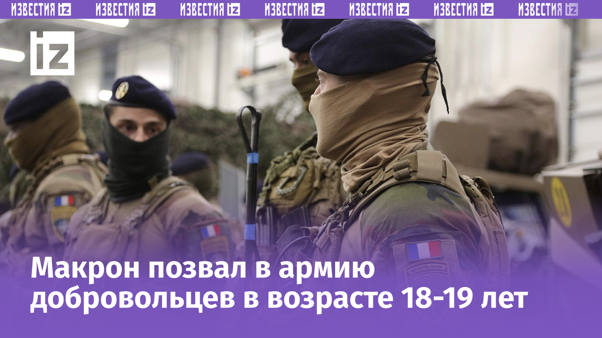Президент Франции объявил о возвращении добровольной службы в армии, стартующей уже следующим летом. В первый год планируется принять от 2 до 3 тыс. человек, а впоследствии набирать по 50 тыс. добровольцев ежегодно. Служба будет длиться десять месяцев, а зарплата составит «до нескольких сотен евро». До этого начальник Генштаб вооруженных сил Франции заявил, что военные должны быть «готовы к столкновению с Россией через три-четыре года». Подробности — в материале «Известий».