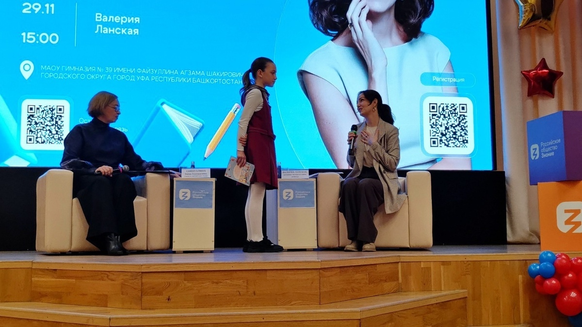 В ассоциированной школе ЮНЕСКО уфимской гимназии №39 прошла встреча школьников с лектором Российского общества «Знание», актрисой театра и кино Валерией Ланской. Как сообщает издание «Бельские просторы», Валерия Ланская много рассказывала о себе, своем детстве и о любви к книгам, которые не могли не поспособствовать в выборе профессии. Также она с удовольствием ответила на многочисленные вопросы ребят. «Мы подключились к проекту «Чтецкие программы» и уже второй месяц наша гимназия входит в тридцатку самых активных литературных клубов страны. У нас активно работает литературный клуб «Семья читателей». На встречу пришла директор филиала Российского общества «Знание» Айсылу Илимбетова. А модератором разговора выступила Эмма Сафиуллина, почетный работник сферы образования РФ, заслуженный учитель РБ» – рассказала директор гимназии Айгуль Ганиева. Фото: редакция журнала «Бельские просторы».