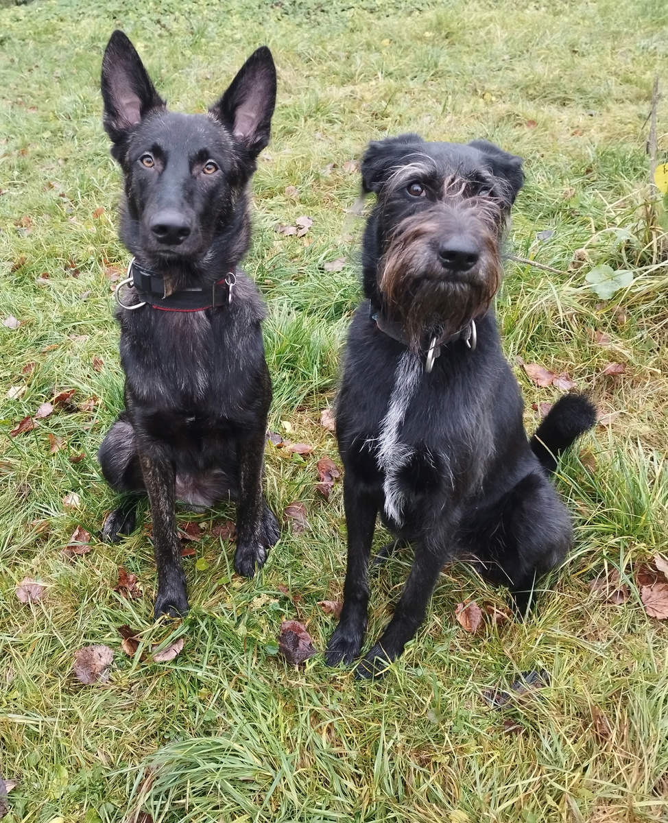 Мои три дня отпуска, которые я хотела провести в деревне одна, совсем одна (с собаками, конечно, это само собой), как-то стремительно сузились до 1.5 дней... Утром, которое припоздало началом на 2 часа, меня почему-то тормошили когтистые лапы прямо за голову. Но не единой царапины. Я сползла с кровати без возражений, всё понимаю, пора. Вышли сами с крыльца чрезвычайно неохотно, потому что в намордниках. Ибо нечего завтракать всем тем, что недоели отдыхающие и принесли птички, живущие на деревьях рядом. Очень быстро зашли обратно. Одни они гулять не любят, их нужно сопровождать развлечением. Шурш сам открывает любые двери с ручками во всех направлениях. Нажимает одной лапкой на ручку, тянет к себе, одновременно любопытный носик вместе со второй шаловливой лапкой протискивается в щель. И готово. Зашли. Насыпала им в миски корм, слегка перемешала, чтоб запах в них был одинаковый, так как даю им разный корм в соответствии с проблемами их пищеварения. Шурш ест сам, а Келли миску держу в ру