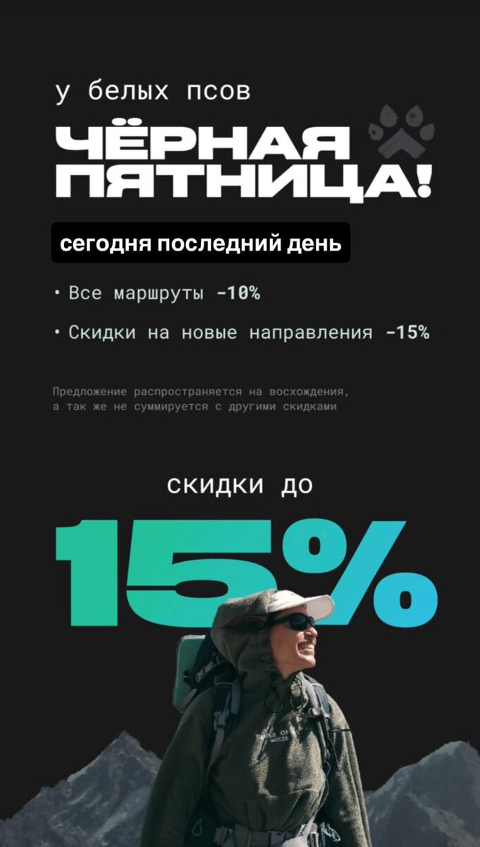 Последний день скидок⚡️ Сегодня вы еще можете забронировать путешествия со скидками до 15%. 📍Выбирайте, куда отправитесь в 2026: — на новые направления действует скидка 15%. — на все остальные путешествия — скидка 10% ⚡️Как получить скидку? — Ознакомьтесь с расписанием походов и путешествий на 2026 год. — Определитесь с направлением, о котором давно мечтали. — Свяжитесь с нашим менеджером — он поможет с выбором и ответит на все вопросы. 🤝Что нужно для бронирования? — Внести предоплату 30% от стоимости тура или похода (с учетом скидки). * скидка действует только на новое бронирование и не суммируется с другими скидками. До встречи в новых местах и путешествиях! Обняли, приподняли 💛 🐾 whitedogs.ru / ✍️ Запись в поход