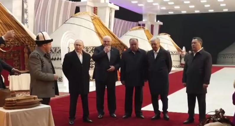 В рамках визита российского лидера в Бишкек 25–27 ноября для глав государств ОДКБ организовали культурную программу. Им, в частности, показали киргизскую юрту и объяснили, что по традиции правая сторона в ней – мужская, а левая, где хранится посуда, – женская, рассказал журналист канала ВГТРК «Россия» Павел Зарубин. Узнав, что левая сторона предназначена для женщин и хозяйственных принадлежностей, российский президент пошутил: «Когда мужчине говорили "иди налево", здесь ничего плохого не было». Ранее в Нижнем Новгороде Владимир Путин пошутил над названием кафедры университета.