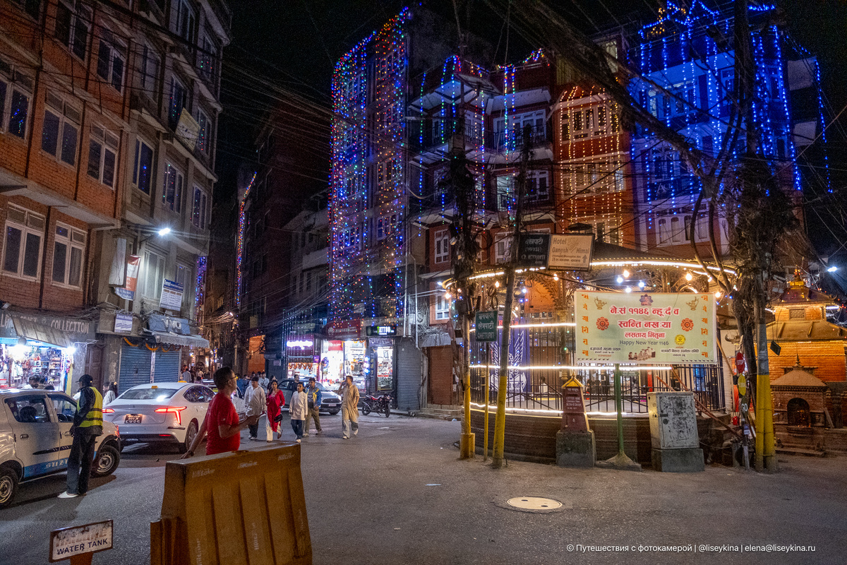 Я приехала в Катманду и попала в совершенно невероятный круговорот событий. Все началось еще на подлете к городу, когда дочь обратила внимание, что почти все дома внизу светятся гирляндами огней, прямо как на Новый год, хотя до него было еще почти два месяца. В первой же лавке продавец радостно объявил: "Сегодня скидки в честь праздника!" Честно признаюсь, сначала подумала, что это просто местная завлекалочка и элемент маркетинга. Но потом заметила, что буквально все дома и магазины украшают гирляндами из ярко-оранжевых цветов, и я подумала — ладно, наверное здесь всегда так. А ближе к вечеру случилось то, что окончательно меня озадачило. Прямо на асфальте, на проезжей части, почти перед каждой лавкой и домом женщины и мужчины начали рисовать причудливые узоры из разноцветных порошков. А рядом расставляли крошечные глиняные свечи. К вечеру весь город наполнился песнями и танцами. По улицам ходили группы людей в традиционных нарядах, пели хором, заходили в дома, и Катманду светился и