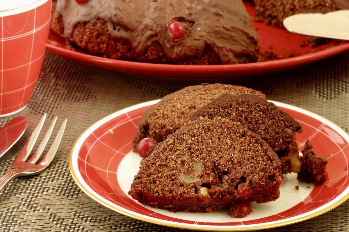 Кукурузный постный кекс с шоколадным мусcом Ингредиенты: ▫️сахар — 180 г ▫️растительное масло — 60 мл ▫️орехи — 60 г ▫️клюква замороженная — 60 г ▫️разрыхлитель — 12 г ▫️сода — ¼ ч. л. ▫️уксус — 22 г ▫️ванильный порошок — 1 г ▫️вода — 200 мл ▫️какао — 36 г ▫️соль — 2 г ▫️кукурузная мука — 240 г Шоколадный мусс: ▫️шоколад — 80 г ▫️вода — 50 мл ▫️вино десертное — 17 мл Способ приготовления: 1. Мука, вода, масло, орехи, клюква, разрыхлитель, сода и уксус, какао. 2. Смешиваем воду, масло и уксус. 3. Всыпаем поджаренные кусочки орехов и клюкву. За рецепт теста спасибо Свете Deva. 4. Растворяем сахар в жидкости. 5. Смешиваем муку — 1,5 стакана, соду 1/4 ч. л., соль и какао 3 ст. л. 6. Вливаем жидкость в сухую смесь, даем настоятся 30 минут. 7. Выкладываем тесто в смазанную форму. 8. Выпекаем 40 минут при 180°С. 9. Готовим мусс: в теплой воде растворяем шоколад (горький) и добавляем вино, ставим на холод на 30 минут, сбиваем. Наносим шоколадную массу на кекс, украшаем клюквой. Приятного аппе