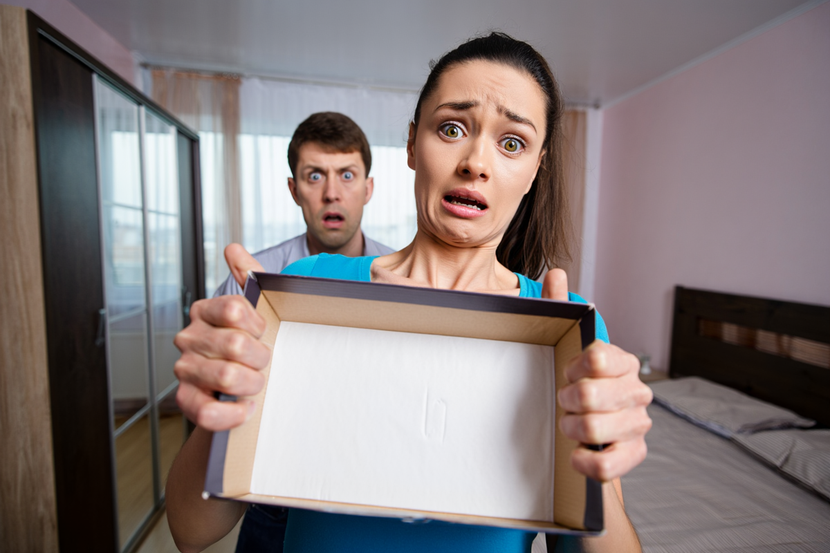 Я молча показала на пустую коробку. Муж поднял ее, заглянул внутрь, побледнел.