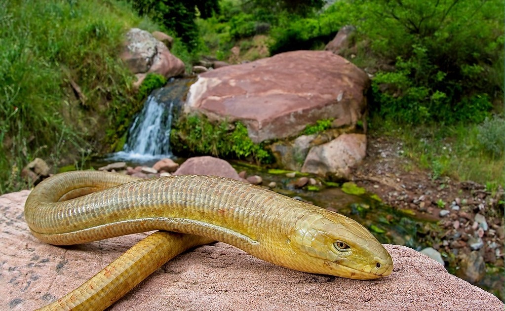 - Подвижные веки: У желтопузика есть веки, которыми он может моргать, в отличие от змей, у которых глаза покрыты прозрачной пленкой.
