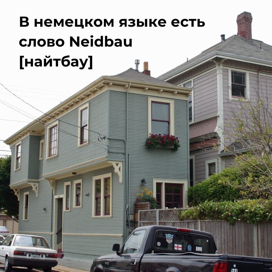 Neidbau: Как построить назло соседу 🏗️ Знаете ли вы, что у немцев есть специальное слово для «строительной мести»? Neidbau [найтбау] — это не просто здание, а целая философия конфликта. Так называют постройку, возведённую не для пользы, а исключительно чтобы досадить соседу. Высокая стена, закрывающая вид, или сарай, блокирующий солнечный свет, — классические примеры найтбау. 📜 Немного истории: Слово образовано от нем. Neid («зависть») и Bau («строение»). И это не современное изобретение! Первые упоминания встречаются ещё в законах Мюнхена (1489 г.) и Гамбурга (1603 г.) как neydpau — то есть, уже тогда власти боролись с такими вредоносными постройками. #интересное