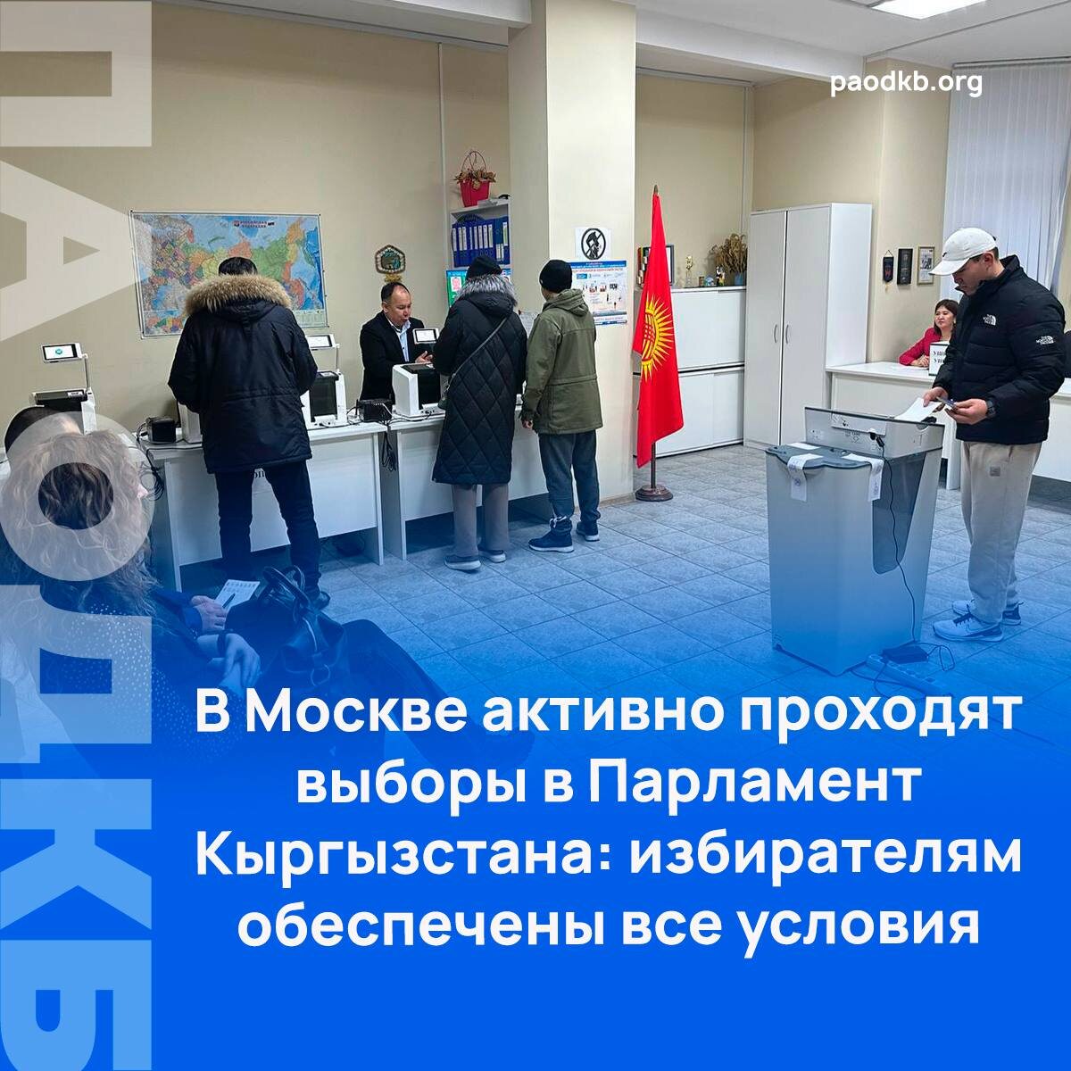 ✅ 30 ноября в Москве активно проходит голосование на выборах в Парламент Кыргызской Республики. Жители Кыргызстана, временно или постоянно проживающие в России, могут отдать свой голос на организованных здесь избирательных участках. 🔴 Наблюдатели от Парламентской Ассамблеи ОДКБ отмечают устойчивый поток избирателей с самого утра. 🔴 Ответственный секретарь ПА ОДКБ Сергей Поспелов отметил, что для граждан Кыргызстана созданы все необходимые условия. «Активность избирателей на участках в Москве очень высокая, при этом созданы все условия для комфортного голосования. На каждом из участков работают несколько операторов, присутствуют множество наблюдателей от кандидатов. Особое внимание уделено вопросам безопасности. Избиратели позитивно оценивают слаженную работу организаторов, что позволяет пройти все этапы голосования без задержек и очередей», - подчеркнул Сергей Поспелов. 🔴 Наблюдатели от ПА ОДКБ отмечают, что активность кыргызстанцев в Москве свидетельствует об их заинтересованно