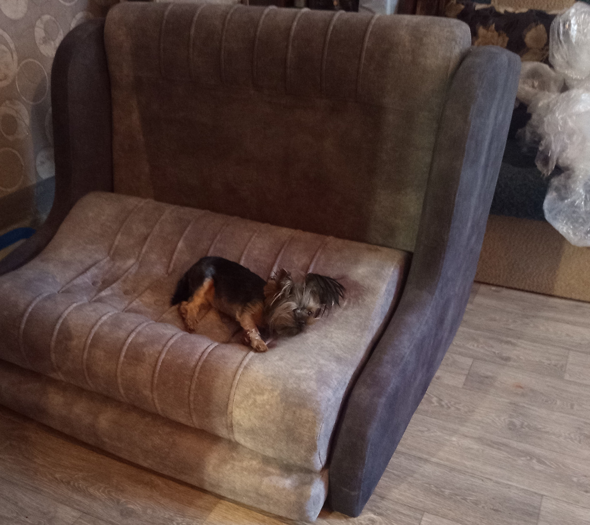 Здравствуйте🤝 Я сплю на небольшом диване, полтора на два , мне места , в принципе хватает, но четыре собаки , сговорясь, решили , что диван и их лежанка в том числе тоже, и начались проблемы. Сюда ногу не положи, тут Жулик, и сюда руку не складывай , там Ника, выше лечь тоже не моги, в голове пристроилась Миля, и поворачиваться не смей, там Ляля... И встал острый вопрос о покупке дивана побольше, и вот , довелось наконец-то приобрести большой диван-кровать 2,8 на 3. Доставка через четыре дня , то есть сегодня. Еще машинку стиральную подошло время менять и ее тоже сегодня доставляют🤦. В общем , с утра уже суета, да это ладно, но, собаки тоже участвуют, туда-сюда мотаются и дозоляют меня, крутясь под ногами. Одна Мила решила , что не царское дело вникать в происходящее и легла на вынесенный из спальни диванчик. Главное, когда начинают носить мебель не потерять собак , чтобы не вышли в подъезд , а оттуда на улицу... И что вы думаете? По закону подлости все это привезли одновременно, бо