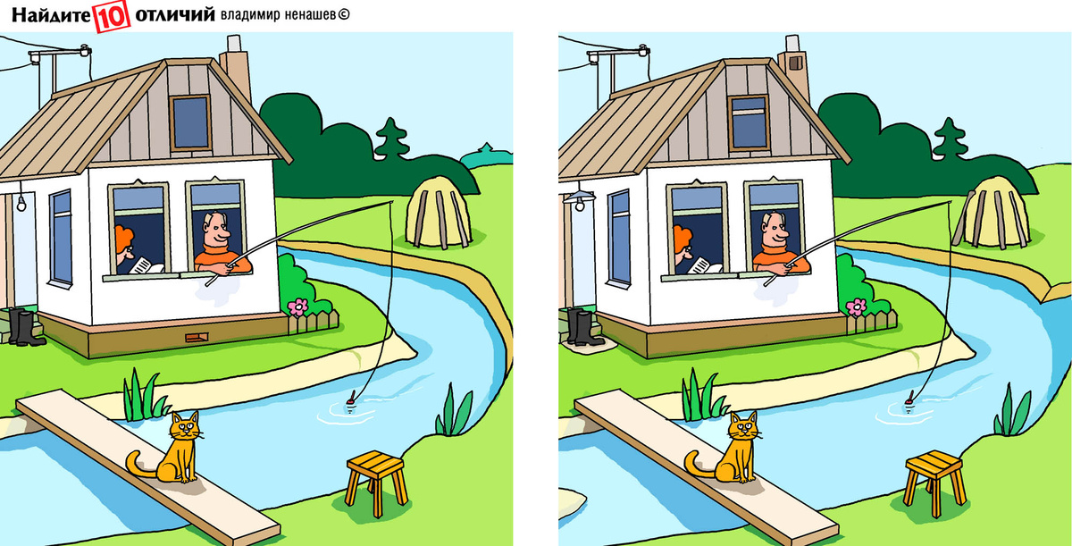 10 отличий. Новый тест про кота и рыбака мёрзнущих в ожидании улова.