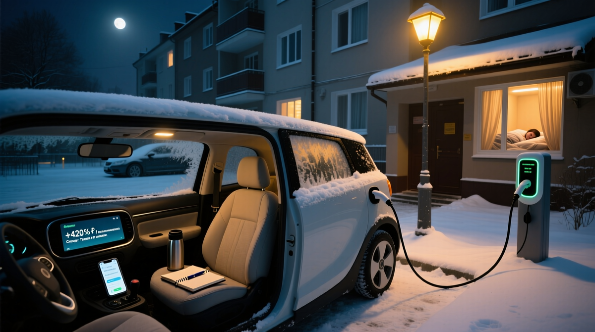 Рядом с домом есть быстрая зарядная станция. Подключаешь кабель — через минут сорок батарея полная.
