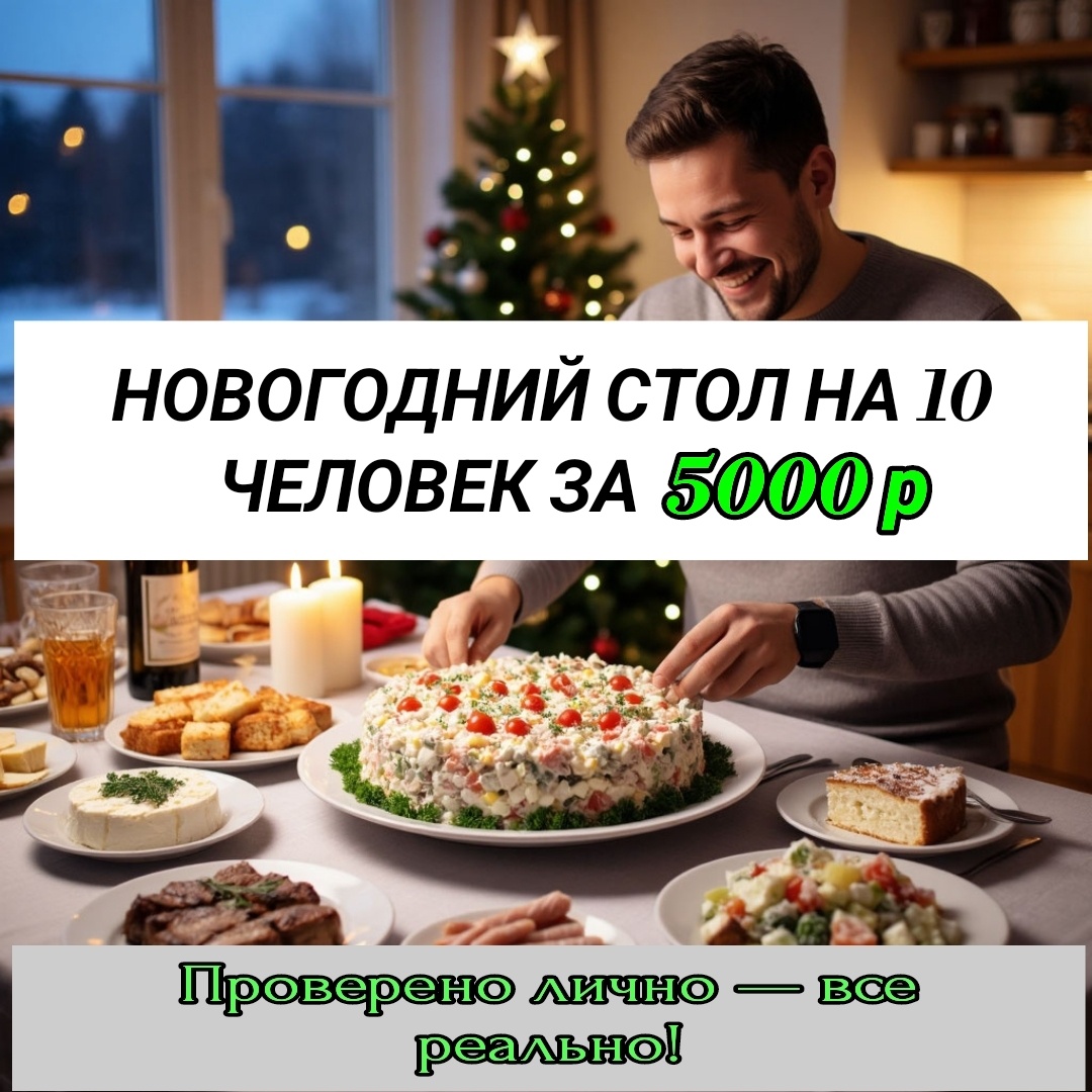 Новогодний стол без долгов: как я накрыл на 10 человек за 5000 рублей (личный опыт 2025)
