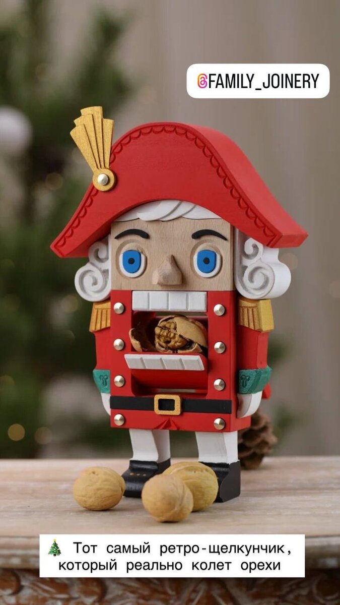 🎄 Тот самый ретро‑щелкунчик, который реально колет орехи 🎁Идеальный подарок премиум‑класса для человека, у которого, кажется, уже всё есть. ☝️Перед вами не фабричная бездушная игрушка, а щелкунчик из массива бука ручной работы 🎨Каждый экземпляр расписывается мастером вручную, поэтому у всех свой характер и настроение. 🟠Пуговицы сделаны из настоящей латуни, а не из дешёвой имитации — это видно и по блеску, и по ощущениям в руках. 💝 Щелкунчик поставляется в подарочной коробке, которая сама по себе уже вызывает восторг: приятно взять в руки, идеально подходит для подарка, выглядит по‑настоящему празднично. Внутри щелкунчик аккуратно уложен и уже укомплектован грецкими орехами, которые можно сразу же начать раскалывать — подарок, который работает прямо из коробки. 🎄Это настоящая ретро‑классика, которая сейчас снова стала очень популярной и гарантированно вызывает восторг у любого, кто берёт её в руки. ‼️Тираж ограничен — всего 100 штук. У каждого щелкунчика ест