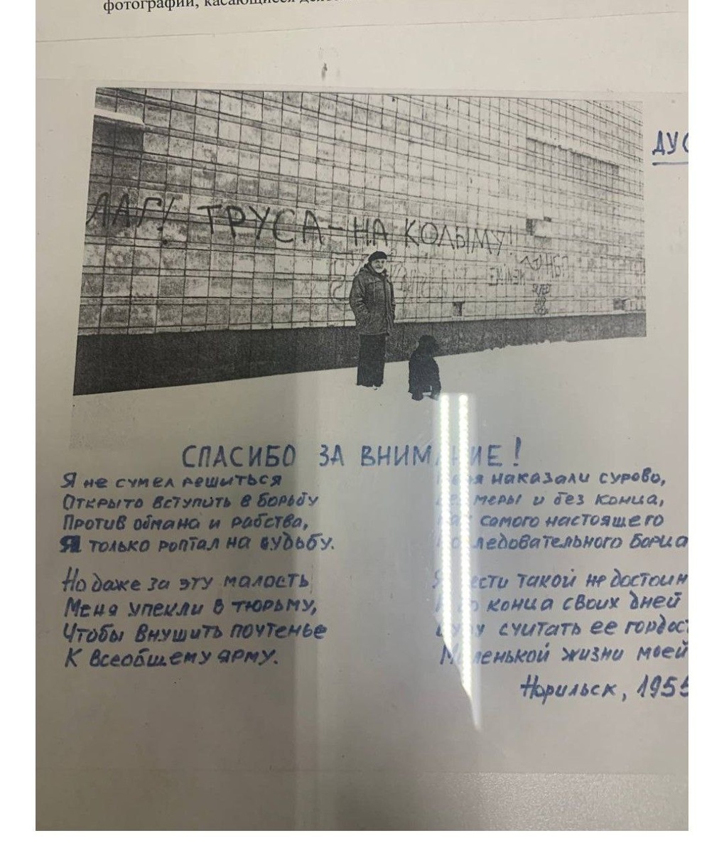 Вчера фильм про Леонида Труса смотрела. Он из нашего Академгородка 18+ НАСТОЯЩИЙ МАТЕРИАЛ (ИНФОРМАЦИЯ) ПРОИЗВЕДЁН, РАСПРОСТРАНЕН И (ИЛИ) НАПРАВЛЕН ИНОСТРАННЫМ АГЕНТОМ КАВЕРЗИНОЙ СВЕТЛАНОЙ ВИКТОРОВНОЙ ЛИБО КАСАЕТСЯ ДЕЯТЕЛЬНОСТИ ИНОСТРАННОГО АГЕНТА КАВЕРЗИНОЙ СВЕТЛАНЫ ВИКТОРОВНЫ Репрессированный. Ему 25 лет дали, но отсидел 3 года в Норлагере, потом Сталин умер - реабилитировали и выпустили. Жил, работал в Академгородке, математические методы в демографии развивал. Это фото с надписью на Доме учёных. Конец 90-х. Трус, когда узнал про надпись - пошел сфотался на фоне. Вот такой документ истории Академгородка получился. "Я не сумел решиться Открыто вступить в борьбу Против обмана и рабства, Я только роптал на судьбу. Но даже за эту малость Меня упекли в тюрьму, Чтобы внушить почтенье К всеобщему ярму. Меня наказали сурово, Без меры и без конца, Как самого настоящего, Последовательного борца. Я чести такой не достоин И до конца своих дней Буду считать ее гордостью Маленькой жизни м