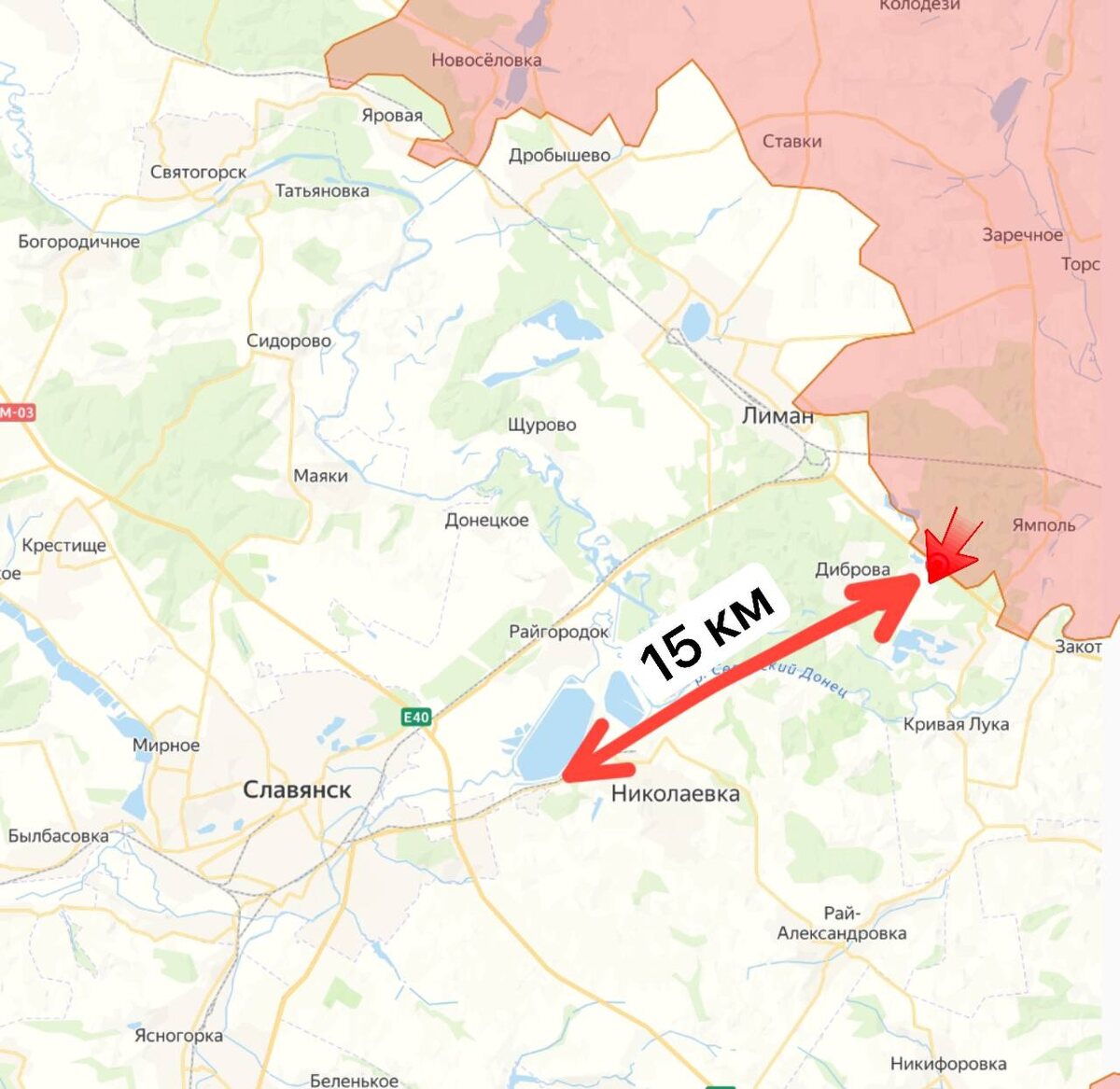 Наши войска заняли территорию вплоть до пруда у дороги на Диброва, что позволяет нам использовать ФПВ-дроны по целям ВСУ как в пригороде Славянска, так и в самом населенном пункте.