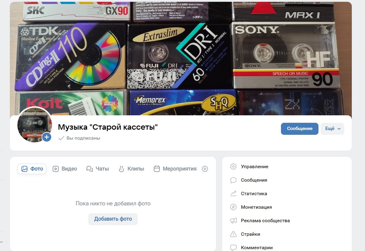 № 286 (698). Воскресенье, 30 ноября 2025 г. Два дня назад у канала "Старая кассета" появилось своё сообщество на сайте "ВК" - "Музыка Старой кассеты"! К его созданию меня сподвигло несколько факторов. Среди них: В общем, я думаю, что сообщество в ВК будет отличным дополнением к каналу на "Дзен". Присоединяйтесь, зовите друзей и знакомых, репостите публикации канала в ВК. И вам несложно, и автору приятно. Страница канала в ВК выглядит так. Перейти в сообщество можно, нажав на синенькие буквы. Сообщество примерно до 8-9 декабря работает в тестовом режиме, но затем разворачиваемся по полной!