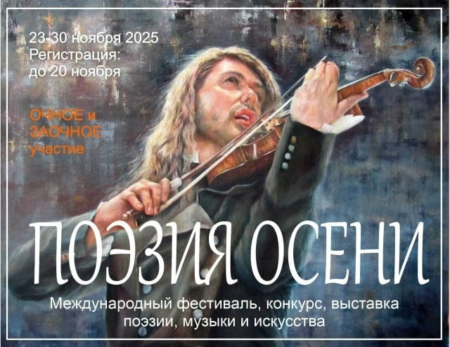 Участвую в "ПОЭЗИЯ ОСЕНИ" (www.artpoetry.ru) Международной выставке, фестивале и конкурсе искусства, поэзии и музыки 30 ноября 18:00 "Арт-Коммуна" Центр современных искусств и художественная галерея, Москва, ул.Киевская, д.2, 4-й этаж ТГК "Киевский" Вечер поэзии в галерее Евразийского Художественного Союза (ЕХС) 📚 artyomkocharyan.ru/event/поэз...